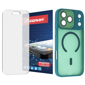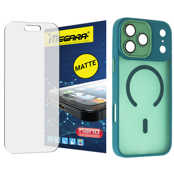 Szkło hybrydowe do iPhone 17 Pro MATOWE + MagSafe ETUI zielone TPU