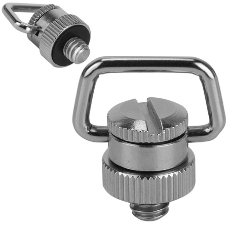 Śruba 1/4" z obrotową głowicą i ruchomym uchem D-ring to funkcjonalny element montażowy do bezpiecznego mocowania i zabezpieczania sprzętu foto oraz wideo.